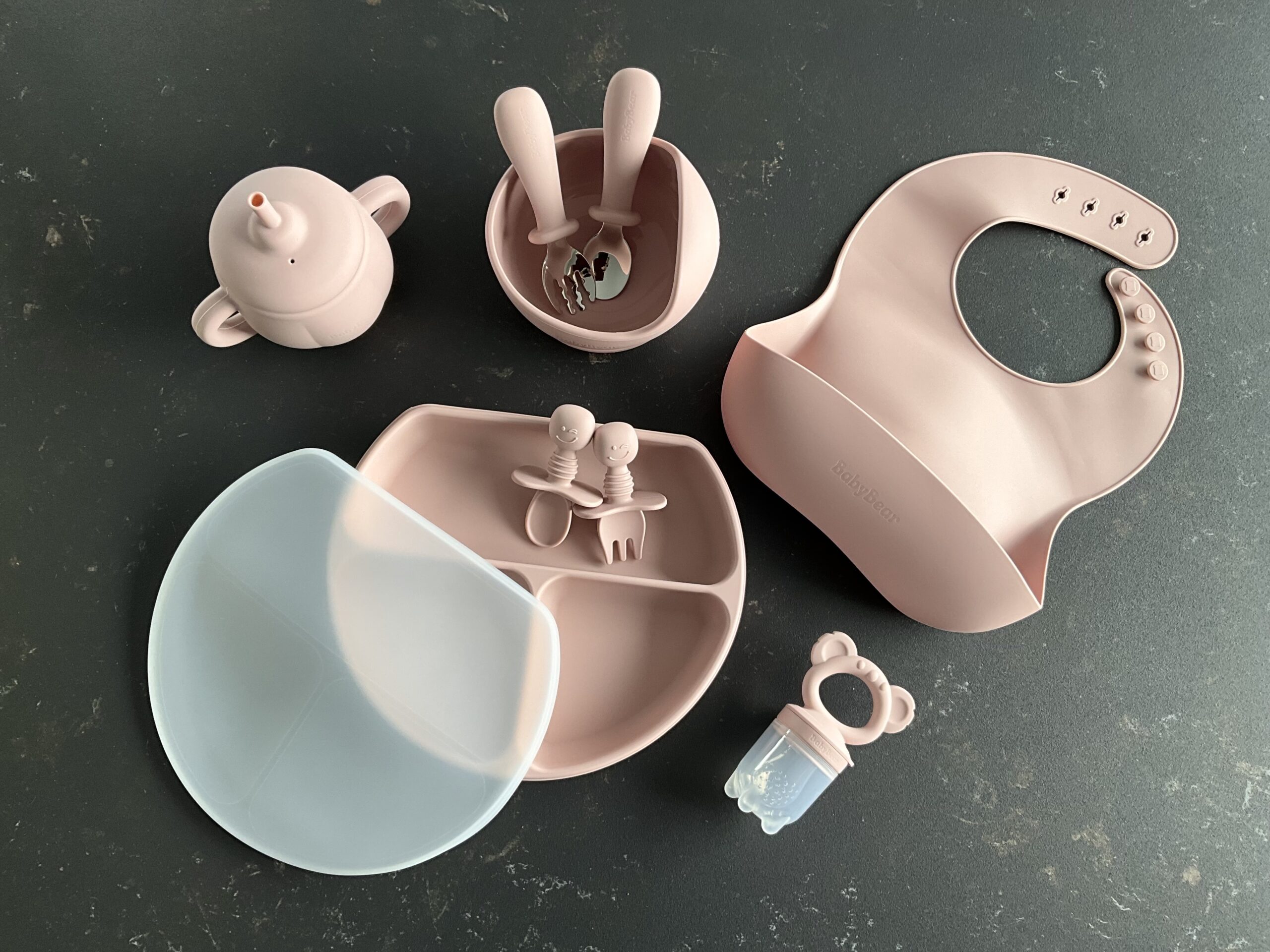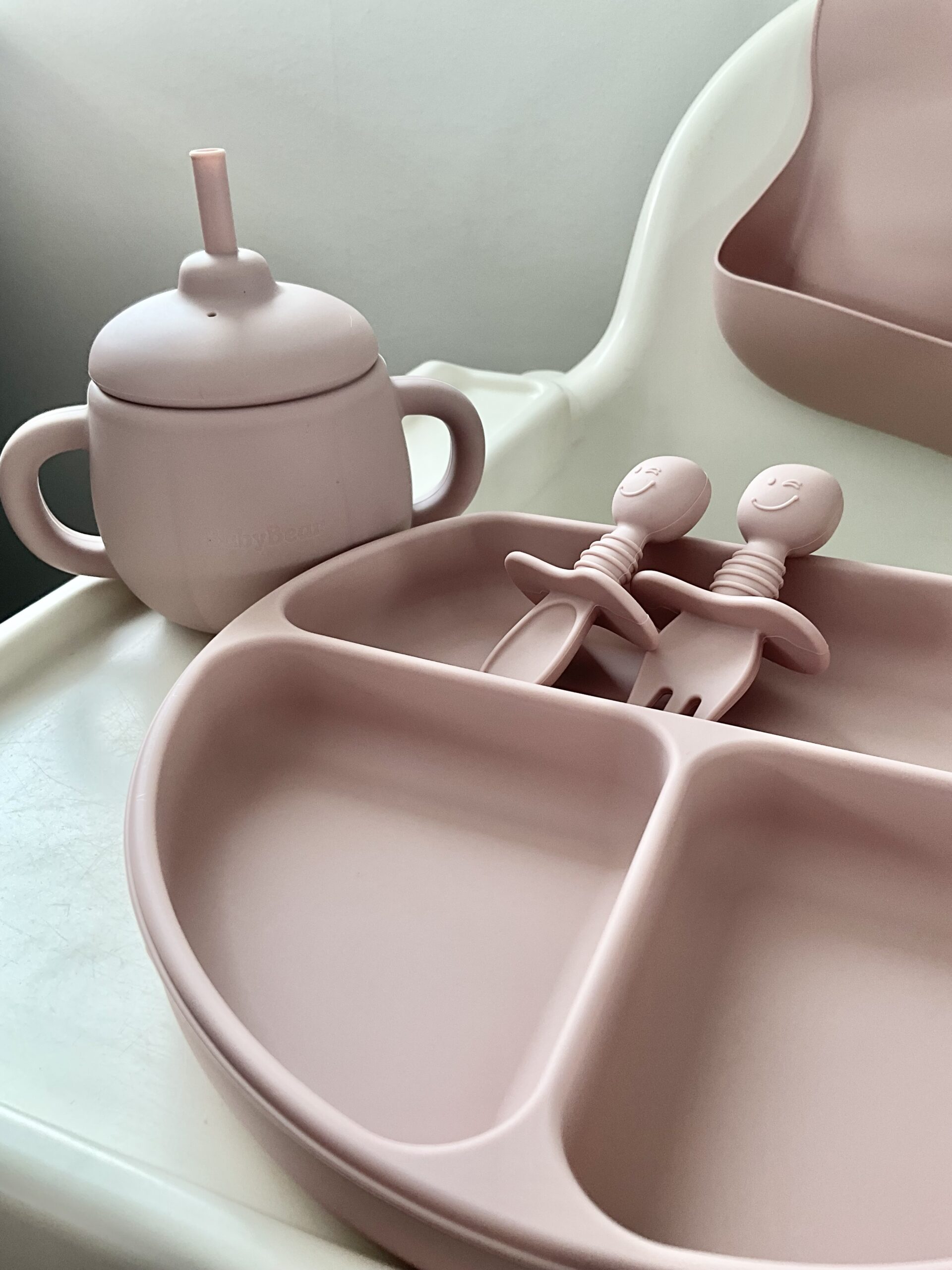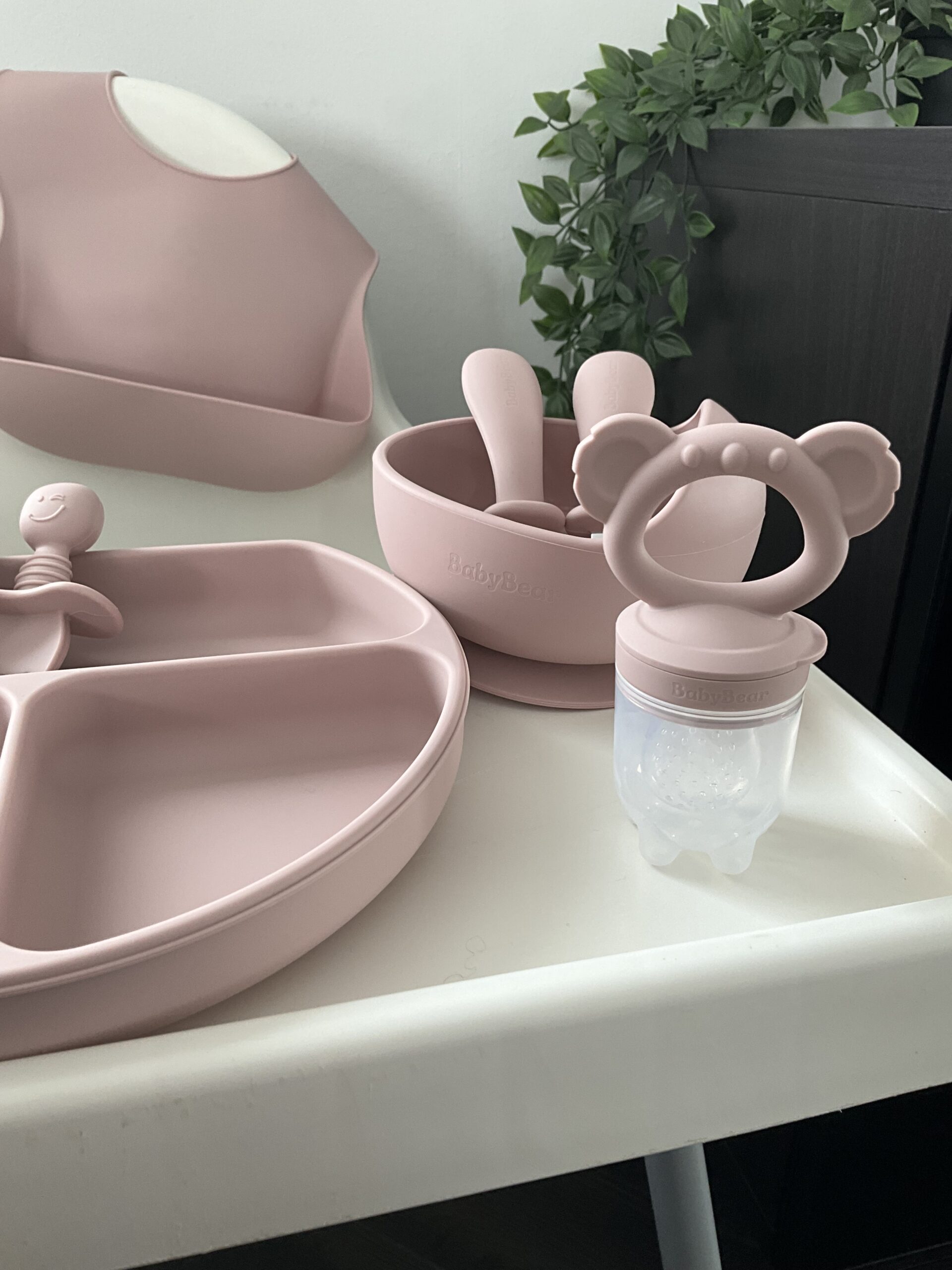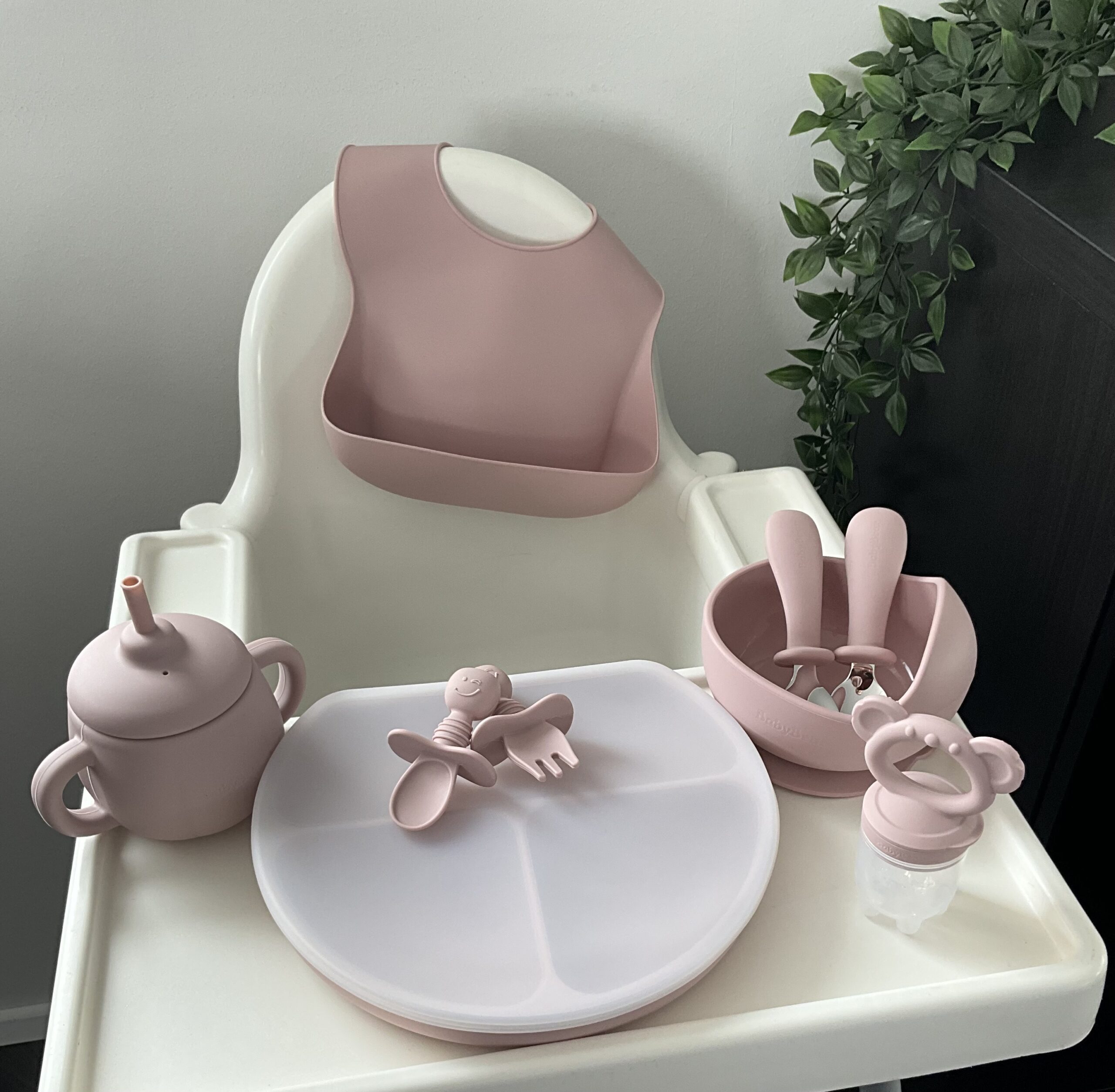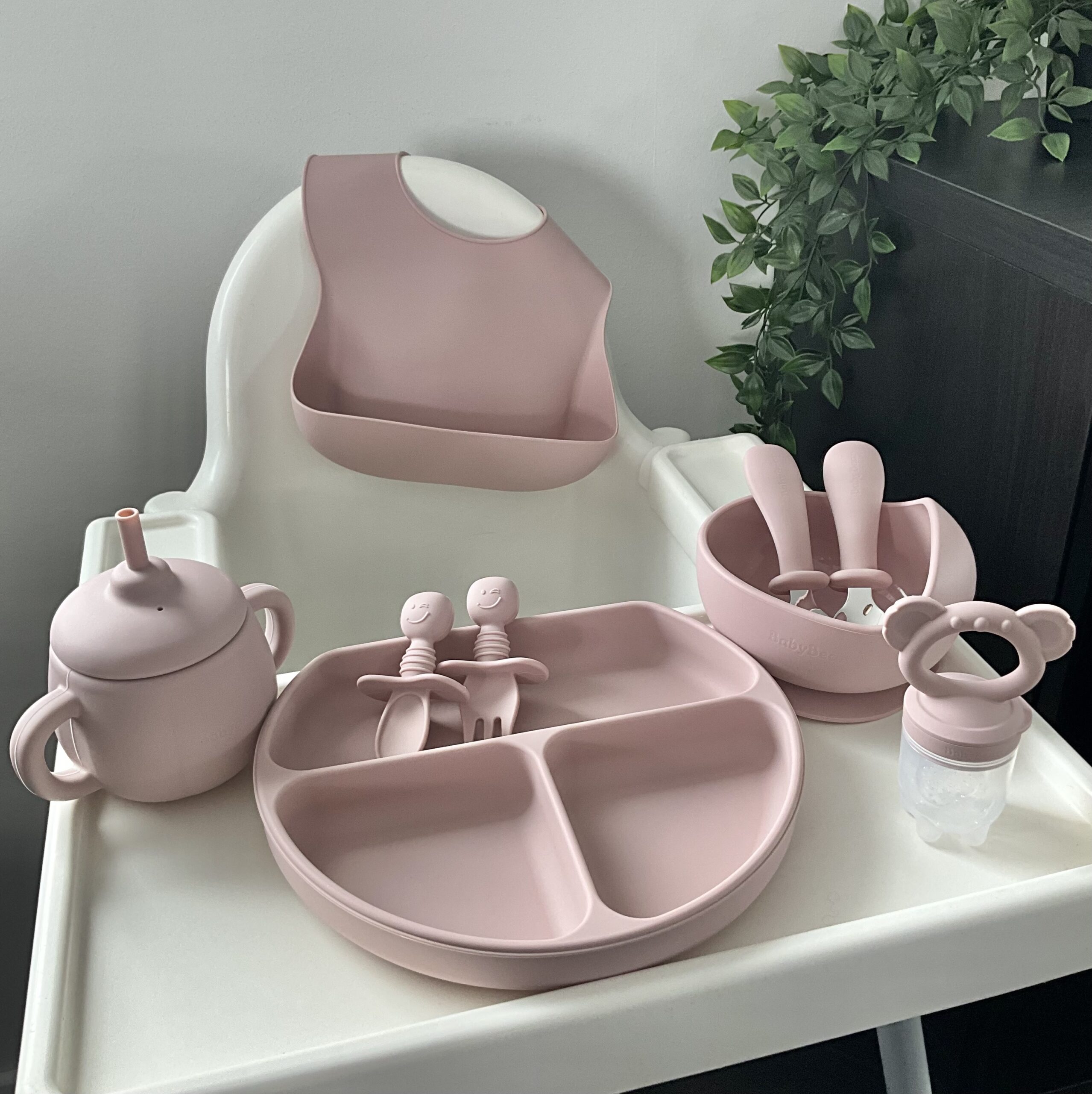 Nýtt – BabyBear – sílikon matarsett – BPA frítt – dusty pink