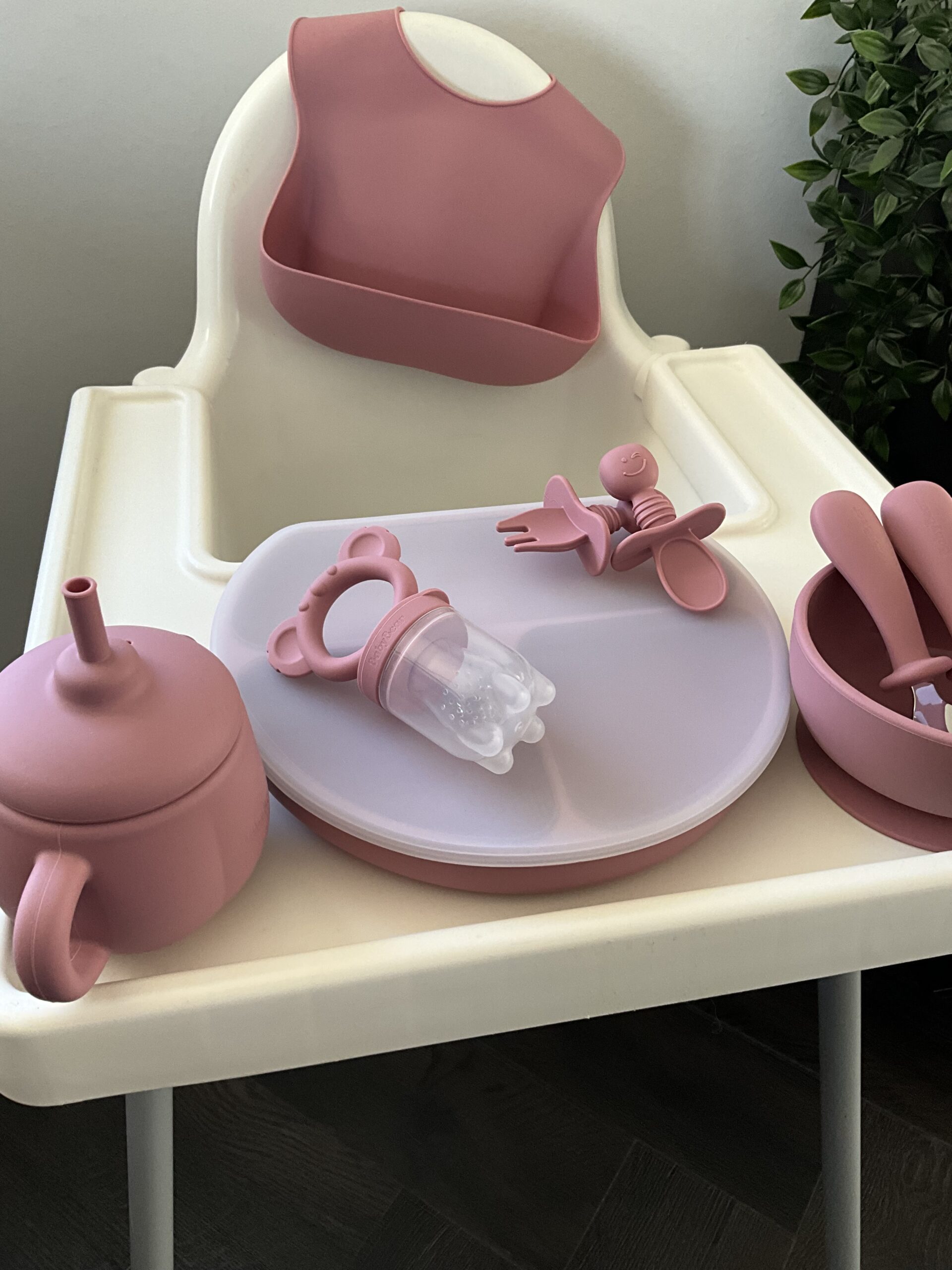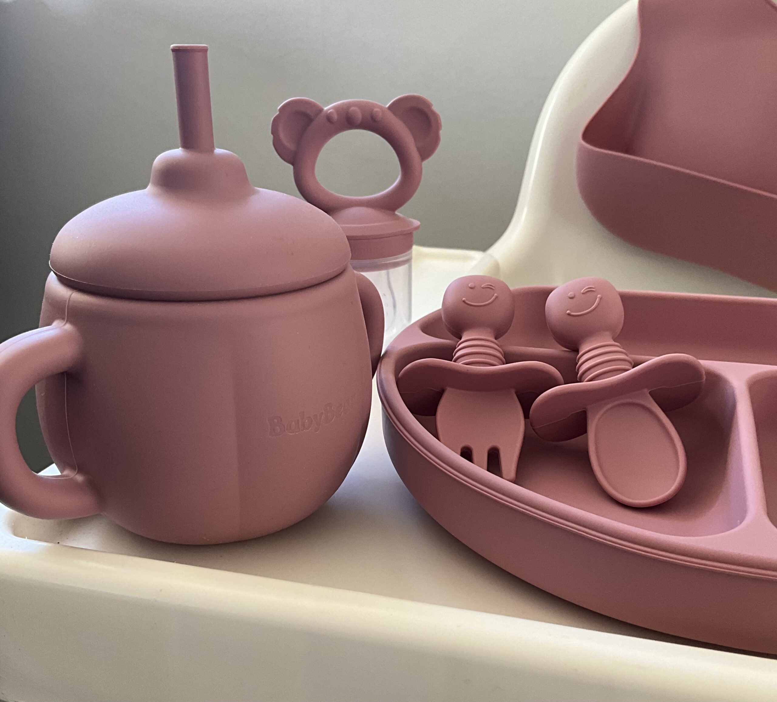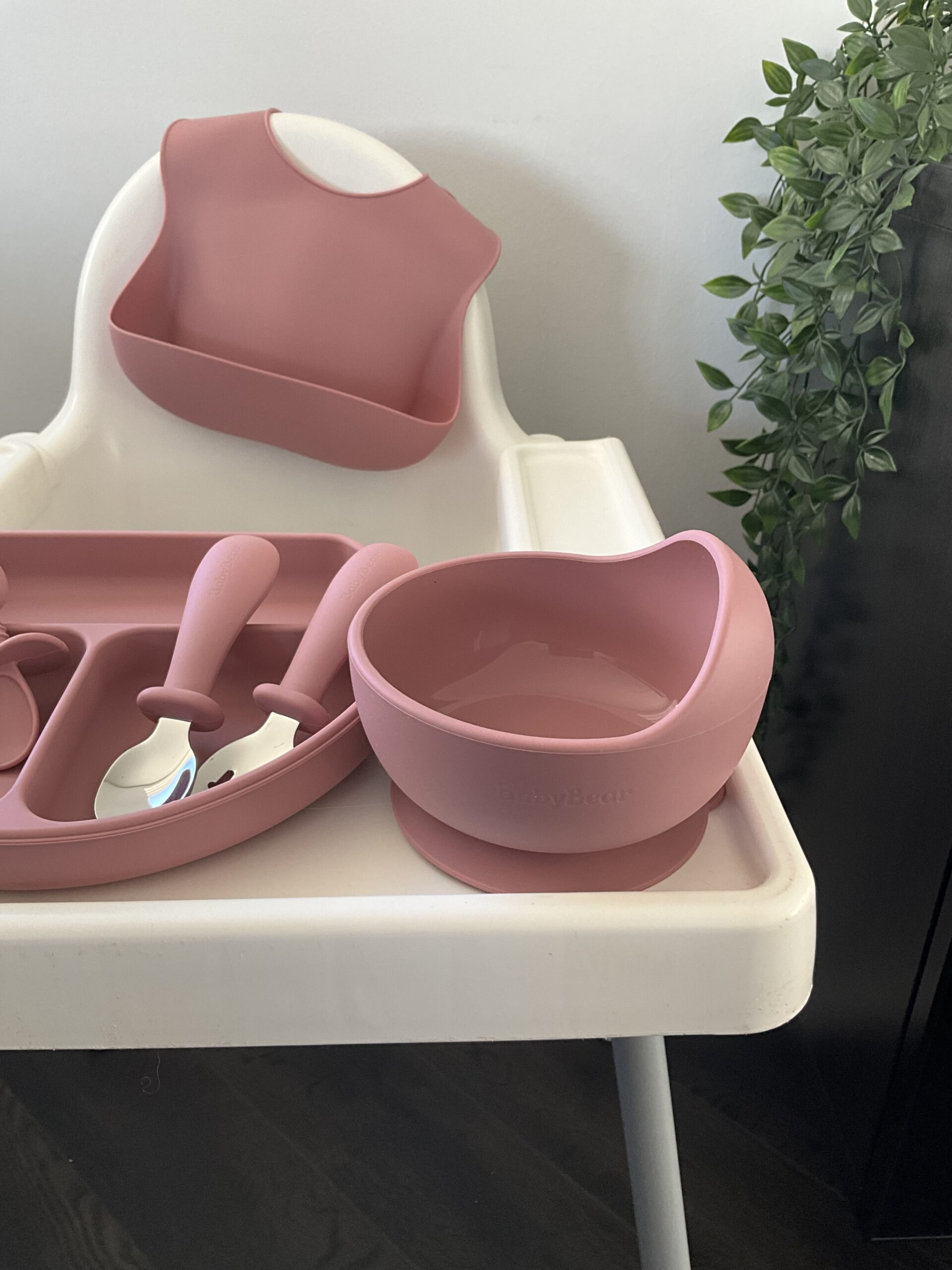 Nýtt – BabyBear sílikon Matarsett – BPA frítt – Dark pink
