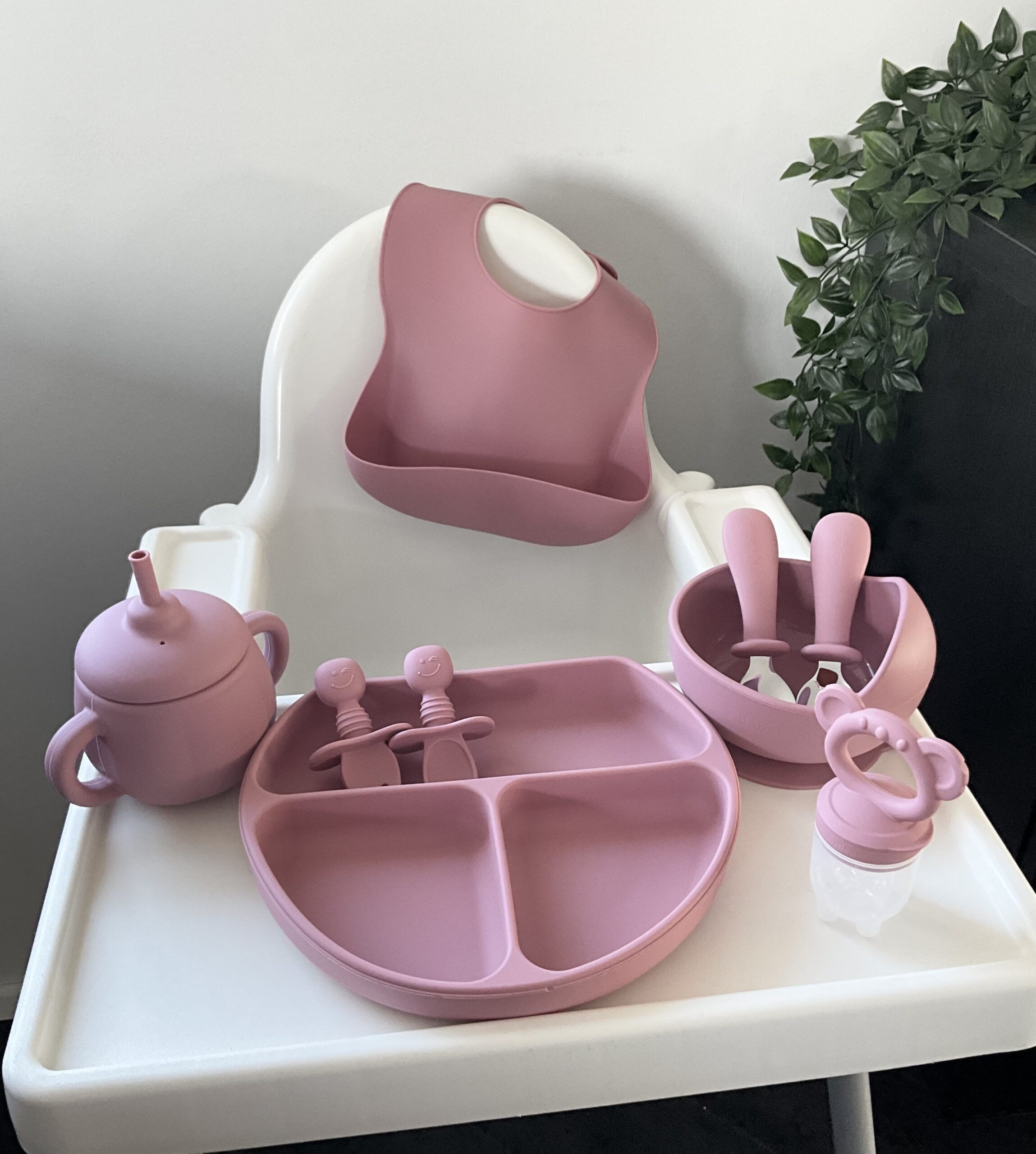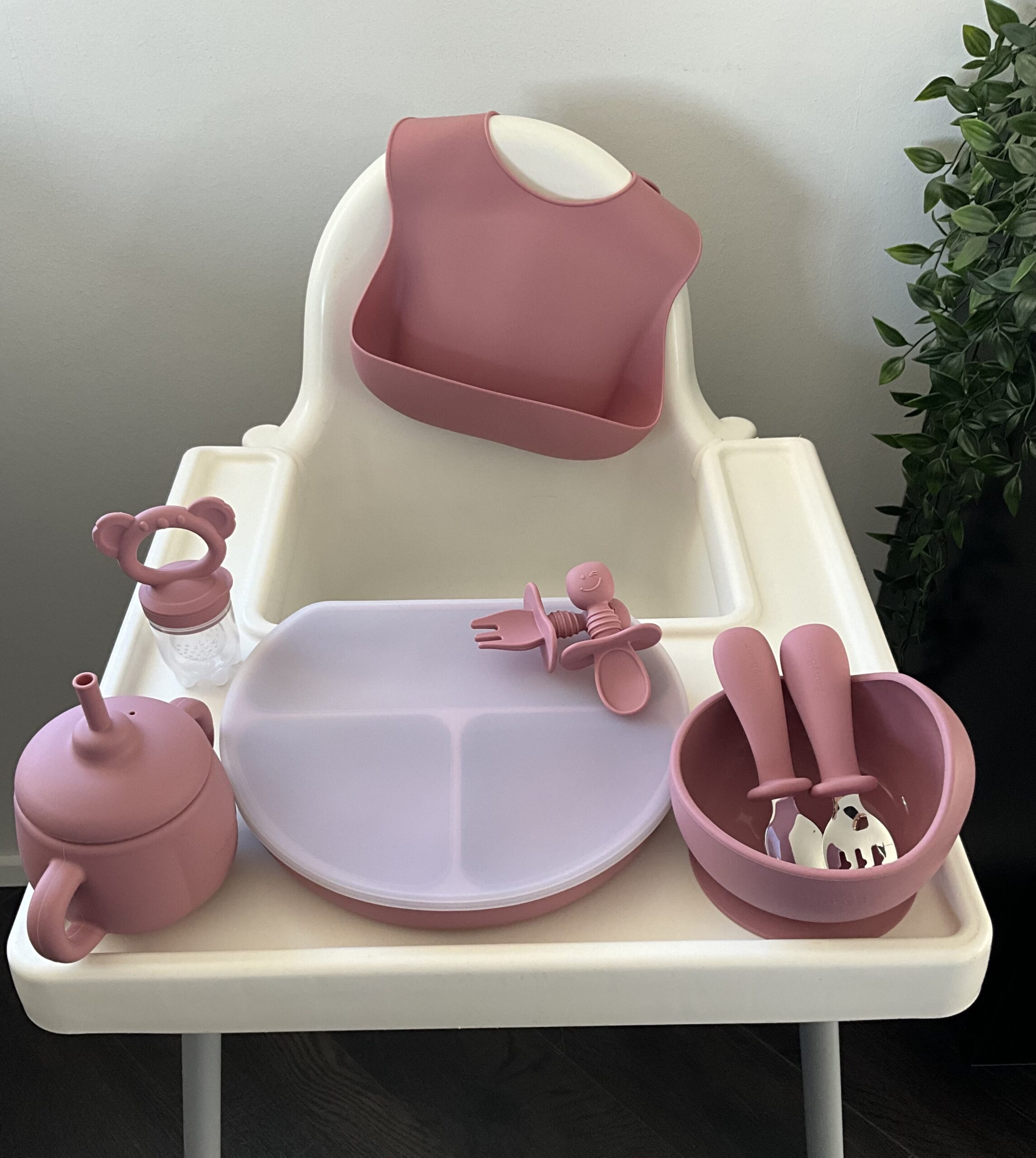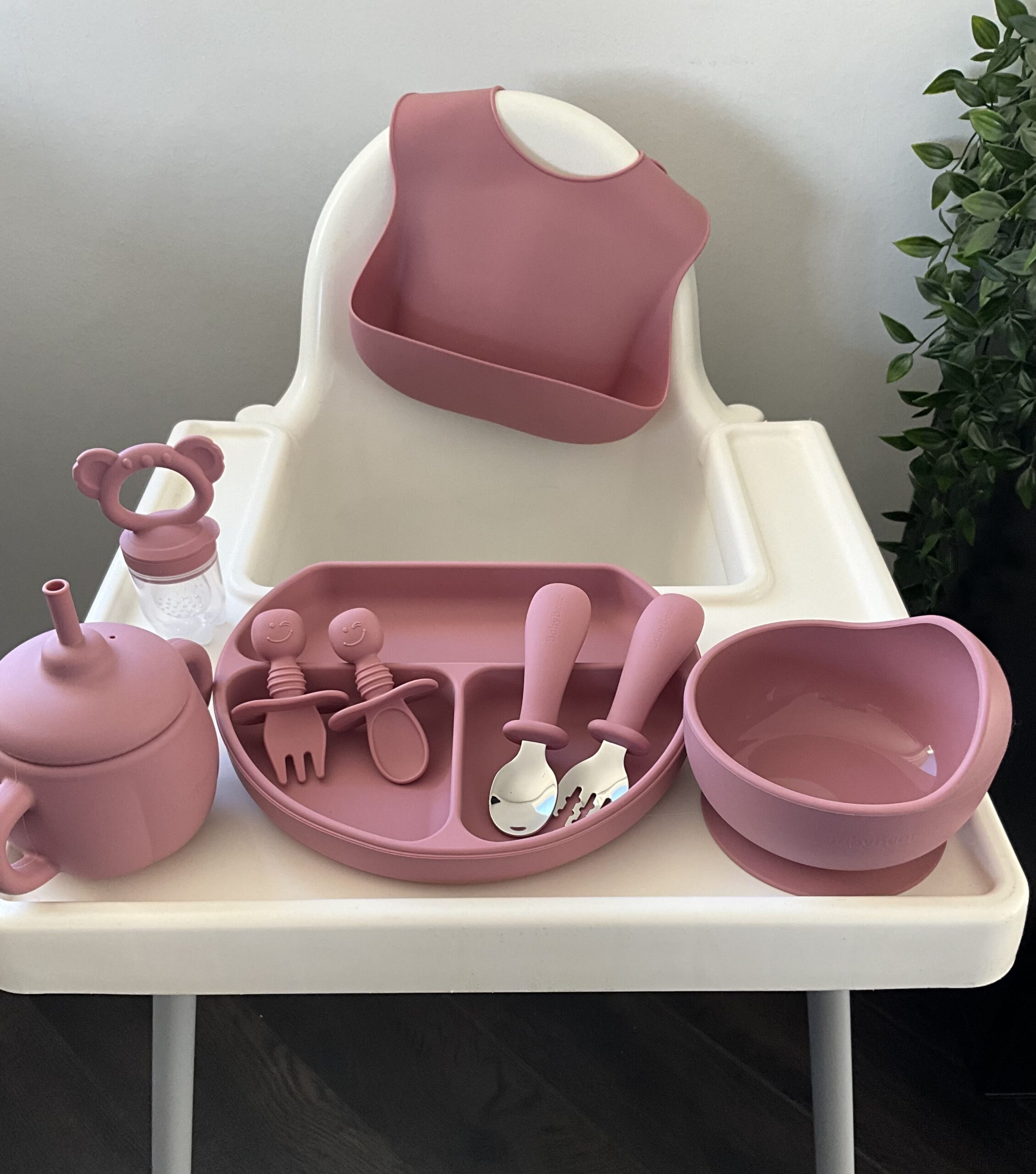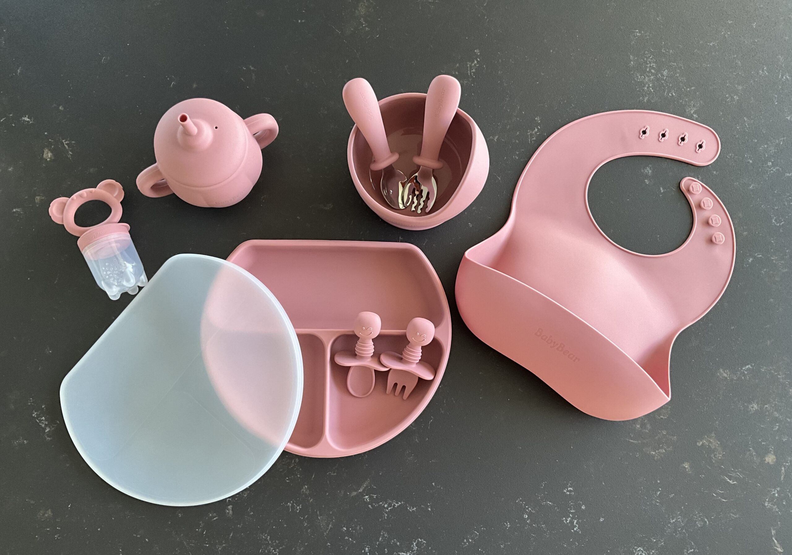 Nýtt – BabyBear sílikon Matarsett – BPA frítt – Dark pink