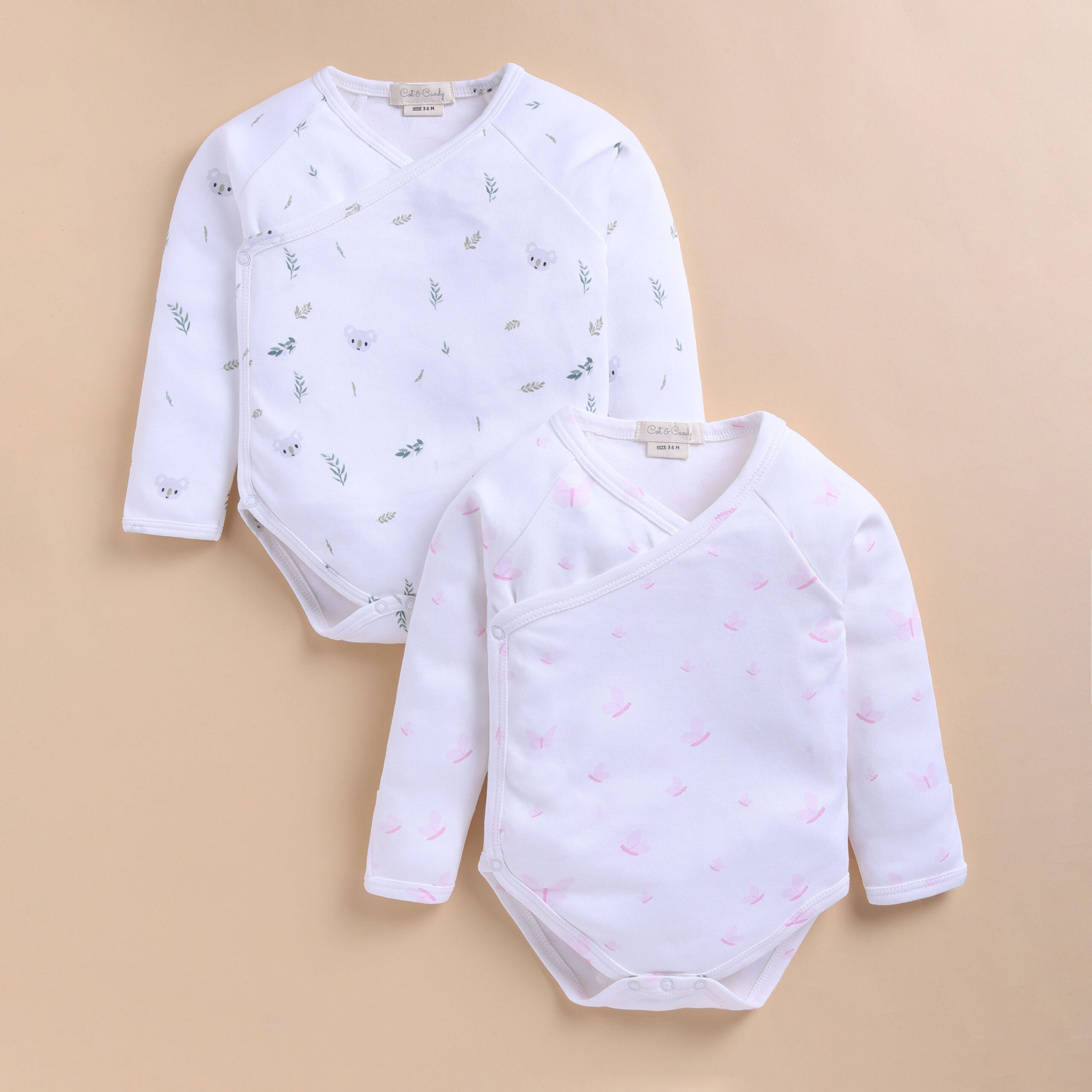 Tvær silkimjúkar samfellur úr 100% lífrænni bómull sem er fullkomið fyrir viðkvæma húð nýfæddra ungbarna.