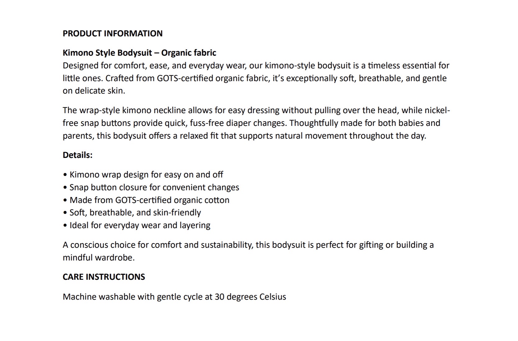 Að fá þessa vottun gefur háann staðal fyrir lífrænum barnafatnaði sem unnin er á siðferðislegan hátt alveg nýja merkingu. Til viðbótar við lífræna og OEKO – TEX vottuð efni þá getur þú verið enn vissari í þinni sök um að við tökum örugga, eiturefnalausa, sjálfbæra og siðferðislega rétta framleiðslu mjög alvarlega og sönnunin er í hverri GOTS vottun.